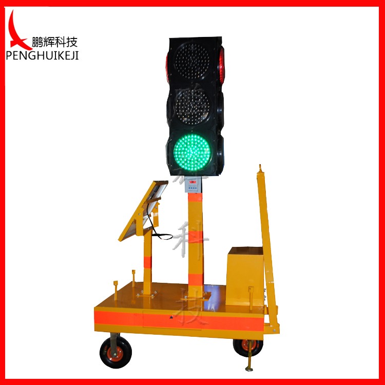 四面滿屏信號燈,控制器為數(shù)碼管顯示,顯示紅、黃、綠三色分屏顯示,配有可移動小車,用于應(yīng)對緊急停電及其它情況需要,內(nèi)含蓄電池,無需另接電源,配太陽能貨交流220V充電,可在陰雨天下連續(xù)工作10天