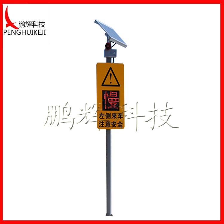 支路哨兵(C款)主要由太陽能板+鋰電池+太陽能控制器、“左側來車、注意安全”標志牌、雷達、語音提示、黃閃紅慢信號燈等設備組成,當檢測到主路有車輛通過時,設備隨即通過警示燈閃爍,語音播報的形式,預警支路行人和車輛,注意交通安全。